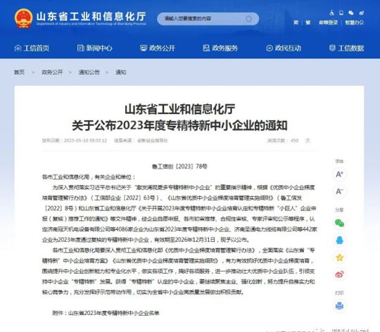 近日,山東省工業(yè)和信息化廳正式公示了山東省2023年度專精特新中小企業(yè)名單,其中,慧科科技以其卓越的表現(xiàn)順利通過了省廳的嚴格復核,成功躋身這一備受矚目的名單。